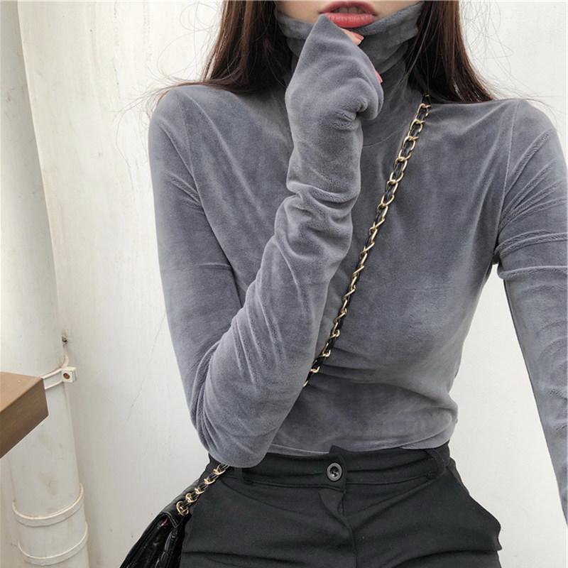 Футболка однотонная, золотая, бархатная, с высоким воротом, на осень и осень, с длинными рукавами, тонкий, теплый топ для женщин — купить товар онлайн с бесплатной доставкой по всему миру!