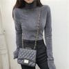 Футболка однотонная, золотая, бархатная, с высоким воротом, на осень и осень, с длинными рукавами, тонкий, теплый топ для женщин
