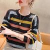 Полосатый вязаный свитер женский осень-зима свободный контрастный топ-летучая мышь радужная полоса длинный рукав вырез тонкий свитер женский