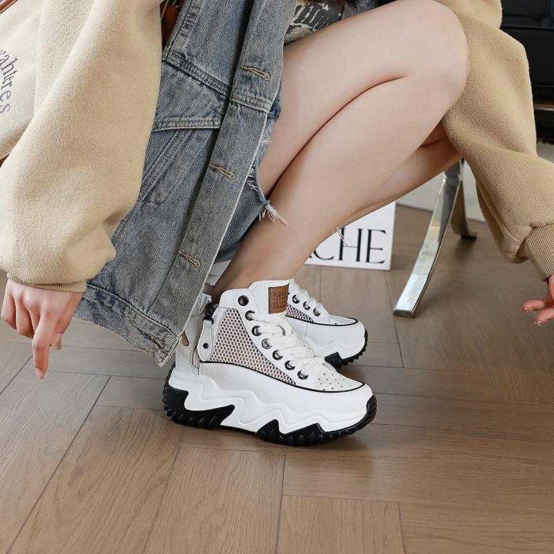 Внутри увеличение 7 см кожаные туфли Daddy для женщин Весна Универсальная платформа Платформа Повседневная обувь