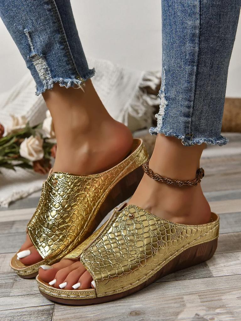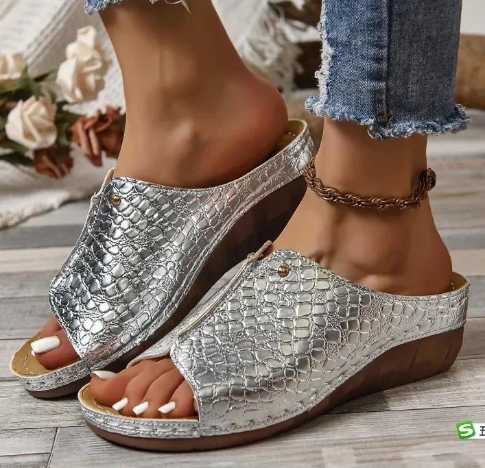 Модные летние женские босоножки на танкетке Премиум-ортопедические сандалии с открытым носком Винтажная нескользящая кожаная повседневная женская обувь на платформе в стиле ретро