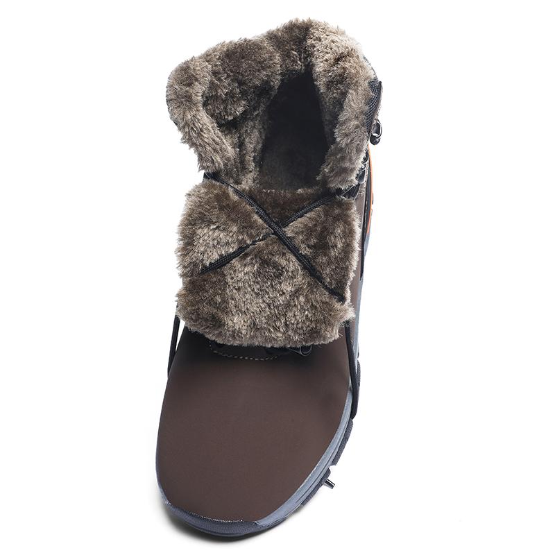МодаКлассические Мужские Зимние Ботинки Кожаные Кроссовки Мужские Меховые Плюшевые Зимние Ботинки Теплые Уличные Ботильоны Обувь для Пешего Туризма Большой Размер 48