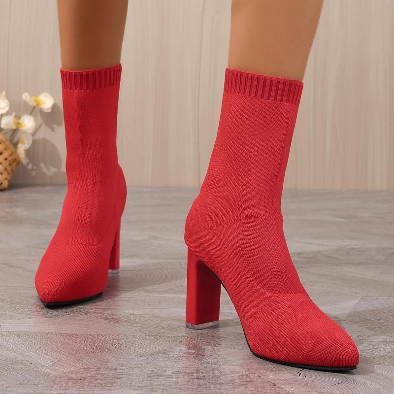 fashion Shoes for Women Fashion Sleeve Women's Boots Spring Autumn Pointed Toe Solid Sexy Dress Short Barrel Chunky Heels Stretch Boots