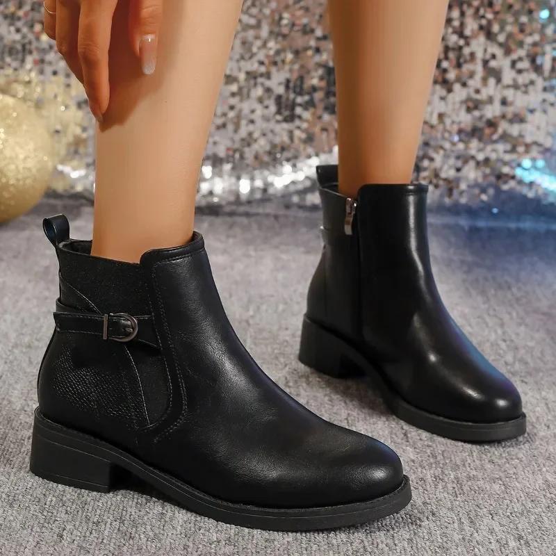 Модная обувь для женщин 2024 года, горячая распродажа, женские ботинки с боковой молнией, осенние, с круглым носком, однотонные, короткие, на низком каблуке, большие размеры, ботинки Zapatos Mujer — купить товар онлайн с бесплатной доставкой по всему миру!