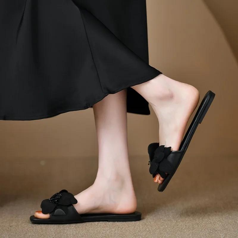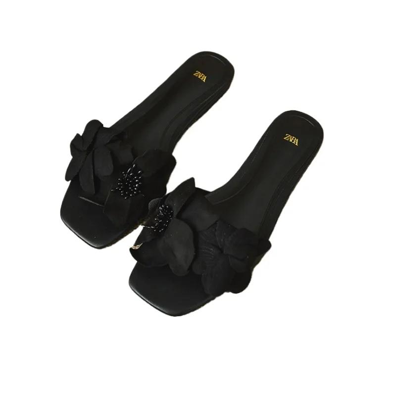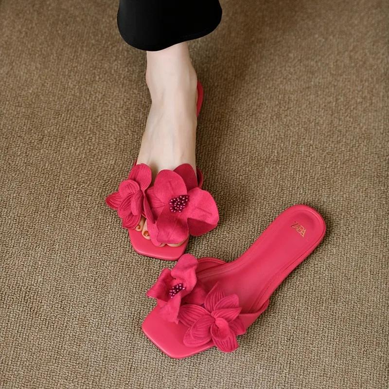 Модная обувь для женщин 2024 года, женские тапочки большого размера высокого качества, модные цветочные тапочки в стиле модерн, новые тапочки на плоской подошве с квадратным носком Zapatos