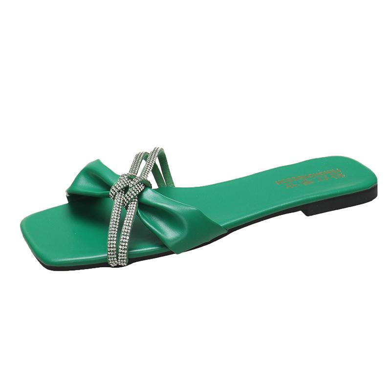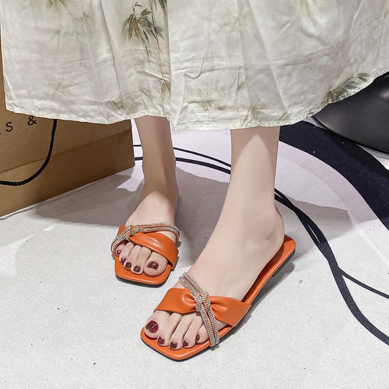 Мода 2024 года. Модная женская обувь. Большие размеры. Женские тапочки. Летние туфли с открытым носком. Женские тапочки высокого качества. Плоские тапочки с кристаллами.