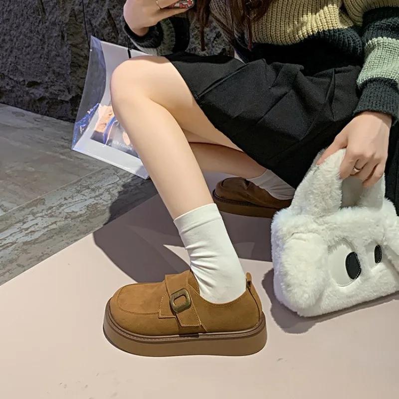 Модные туфли на плоской подошве слипоны на платформе осенние повседневные женские кроссовки платье слипоны ретро криперы осень 2024 новинка досуг Zapatillas Mujer
