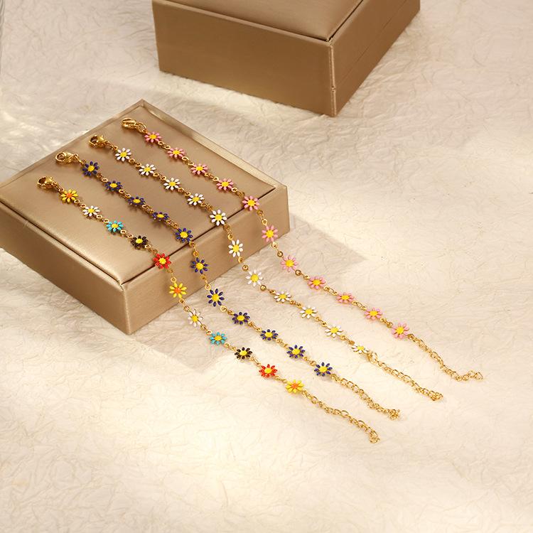 2024 Cross-Border Новое ювелирное изделие из титановой стали, ожерелье, браслет из 18-каратного золота, белое/цветное, маленькое ожерелье с цепочкой из маргариток — купить товар онлайн с бесплатной доставкой по всему миру!
