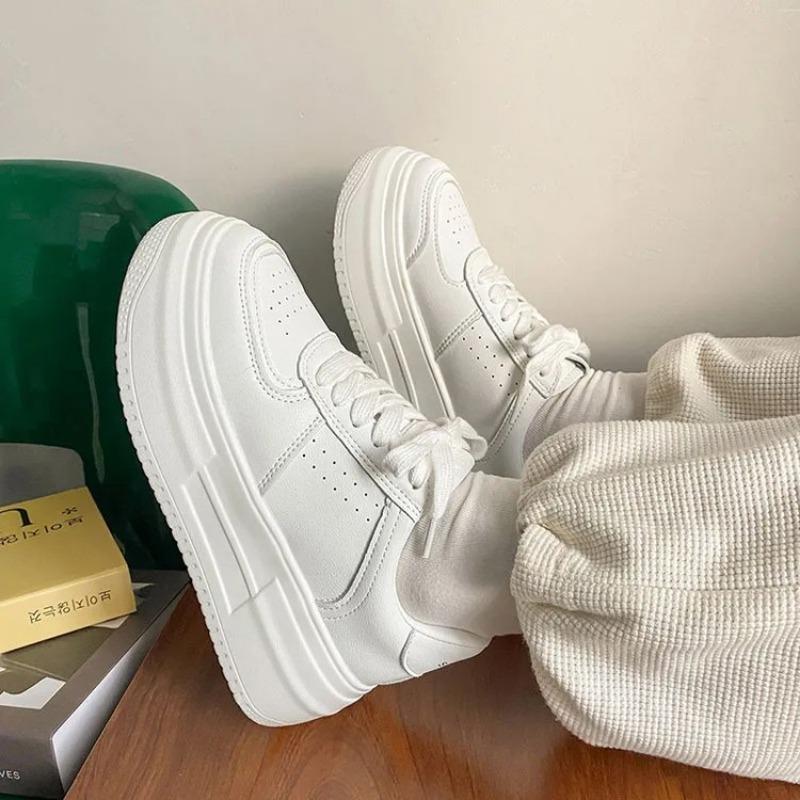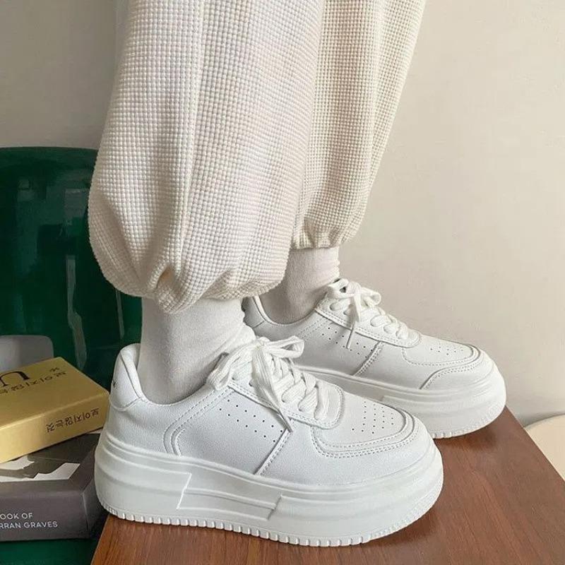 Модные белые туфли на толстой подошве для женщин 2024 года, популярные и универсальные повседневные туфли-бисквит с увеличенной высотой внутри