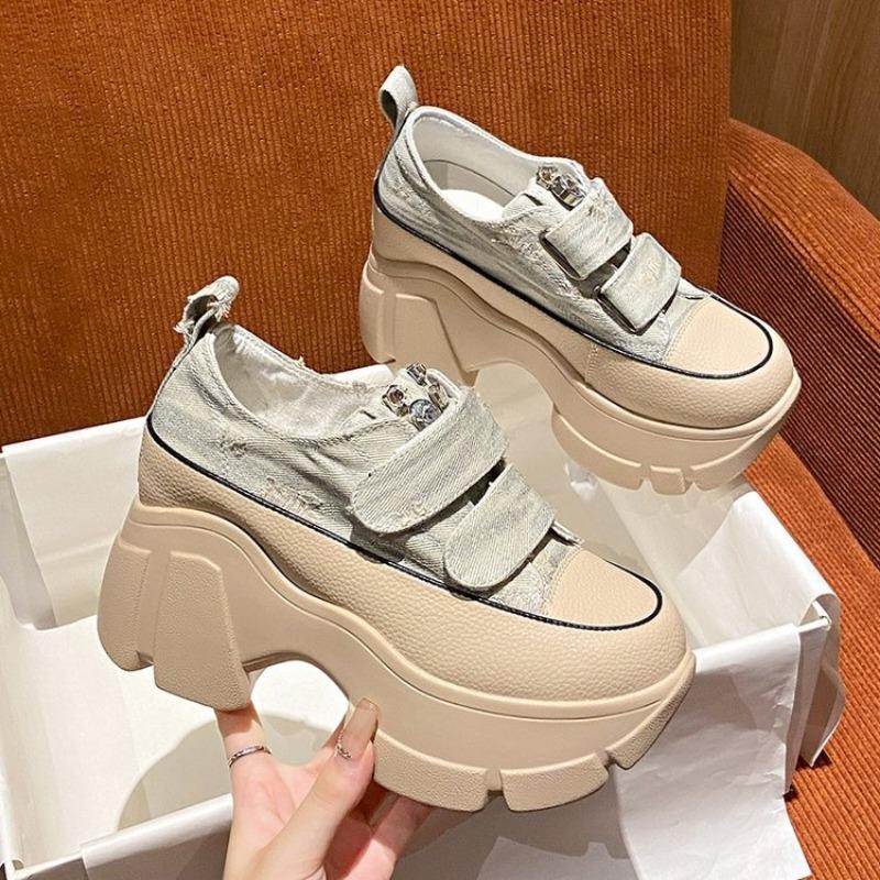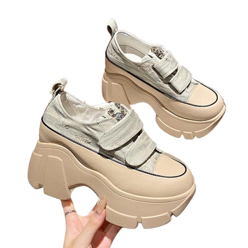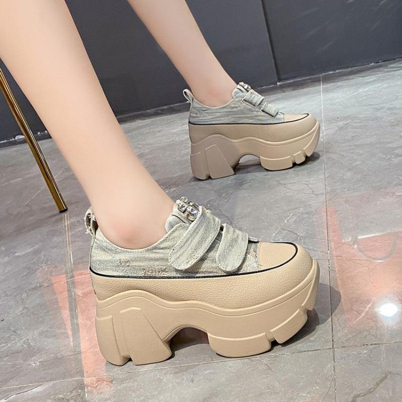 Мода 2024 года, новинка для женщин, осень, высококачественная вулканизированная обувь, уличные женские кроссовки со стразами, дизайнерские туфли на толстой платформе и танкетке