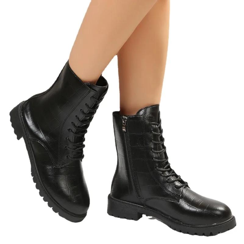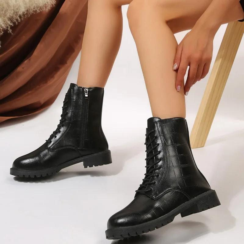 Распродажа модной женской обуви 2024 года, женские ботильоны, классические, современные, женские, со шнуровкой, молнией сбоку, круглым носком, на низком каблуке, из искусственной кожи, женские