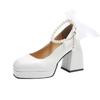 Мода 2024 года, новые модные туфли для женщин, туфли Мэри Джейн на высоком каблуке, летние однотонные туфли для офиса и карьеры, женские туфли с бусинами, Zapatos