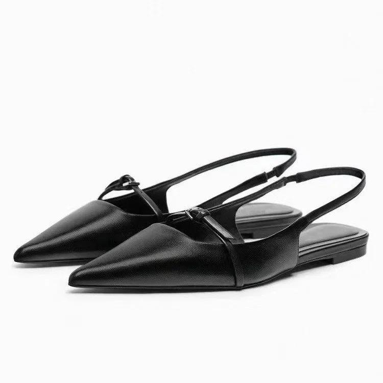 Модные новые летние корейские сандалии для женщин с черным острым носком и однорядной спинкой Air French Simple Casual Sandals