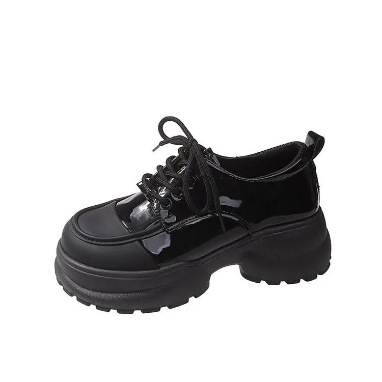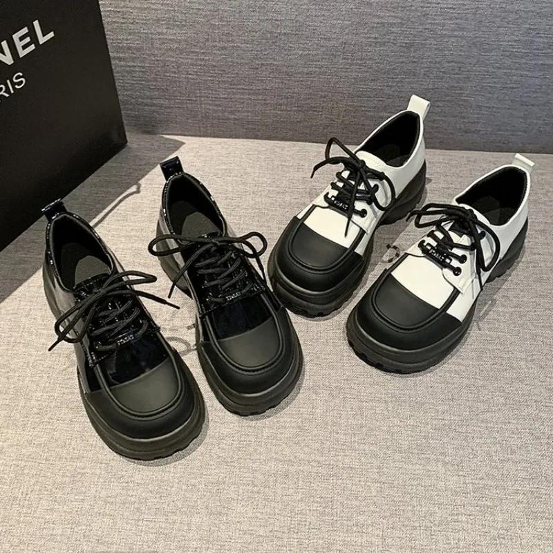 Мода 2024 года, новые туфли-лоферы на толстой подошве, цветные женские туфли на шнуровке, маленькие туфли из искусственной кожи, универсальные повседневные туфли на плоской подошве