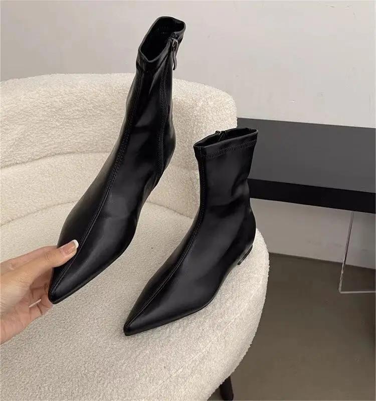 Мода остроносые женские ботильоны на высоком каблуке туфли челси женские осень 2024 тренд роскошные туфли-лодочки для вечеринок мягкая кожа готические туфли женские