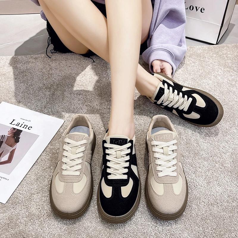 Модная обувь для женщин 2024 года, трендовые женские кроссовки из коровьей замши, разноцветные кроссовки на плоской подошве, женская повседневная обувь, мода, размер плюс 40 — купить товар онлайн с бесплатной доставкой по всему миру!