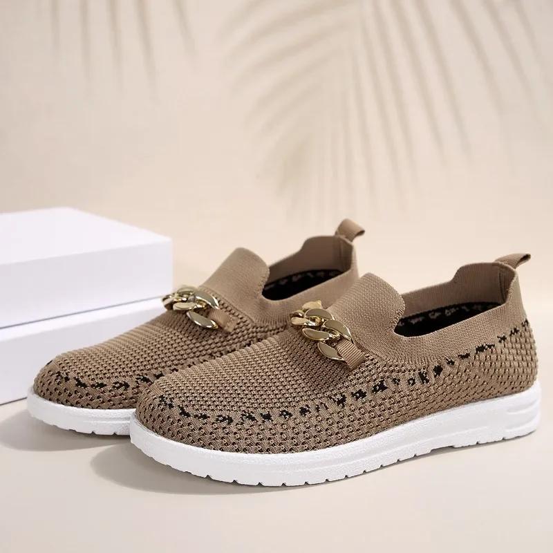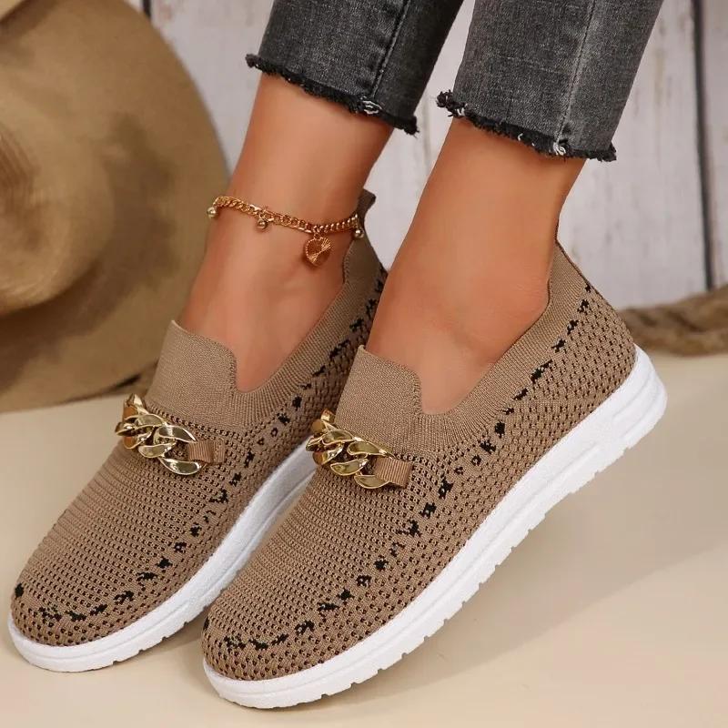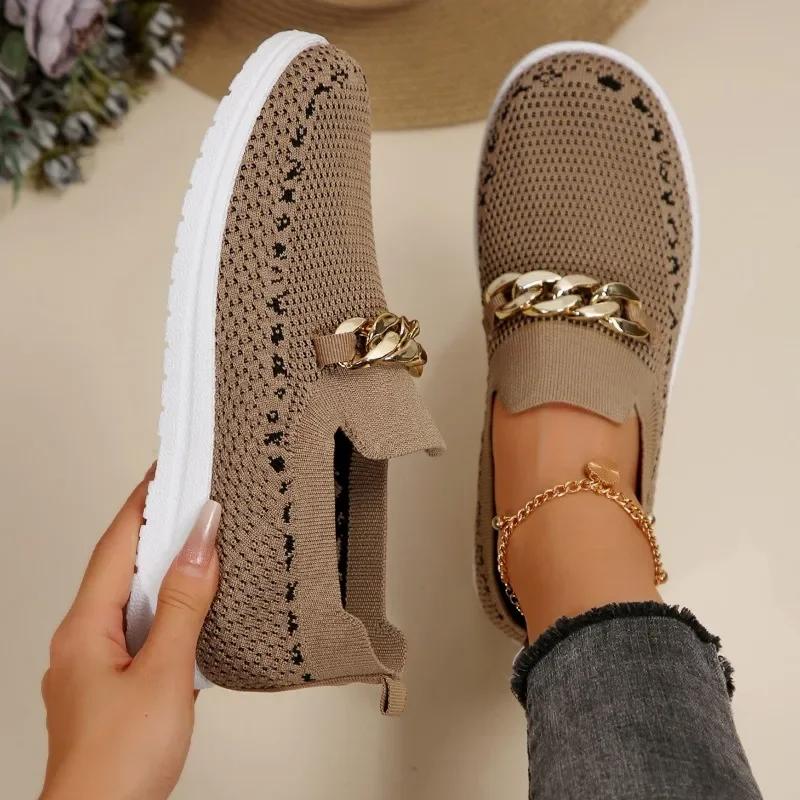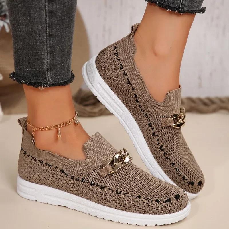 Модная женская обувь 2024 года, женская обувь без застежек из вулканизированной кожи, модная женская повседневная обувь с металлическими украшениями, новые сетчатые кроссовки больших размеров