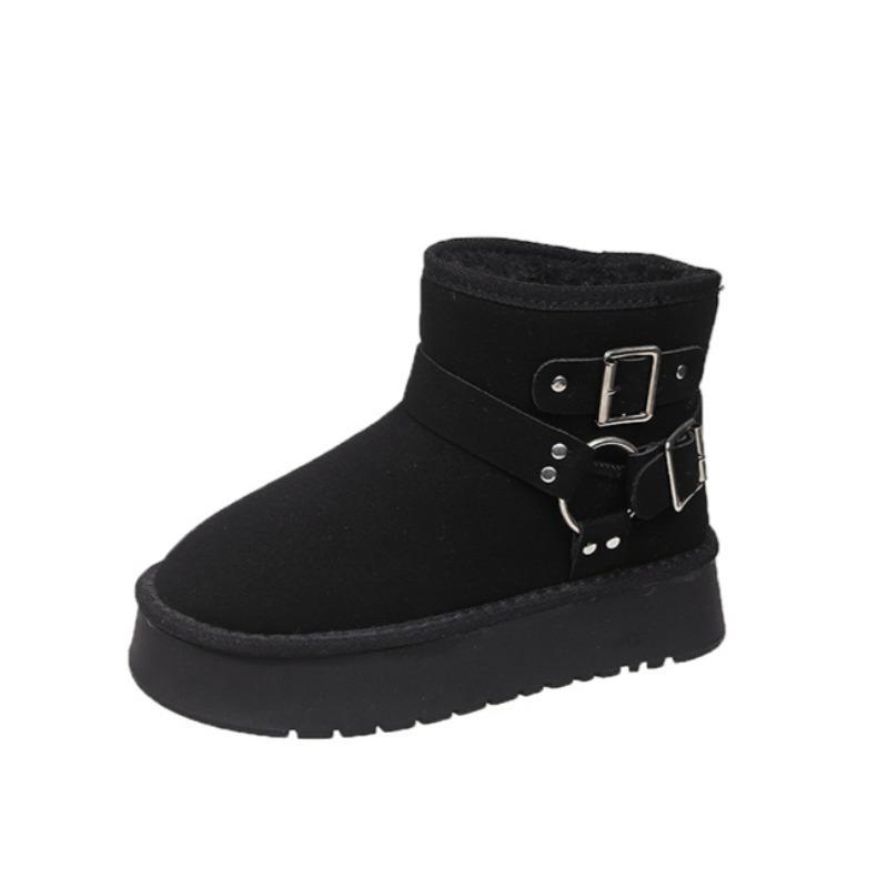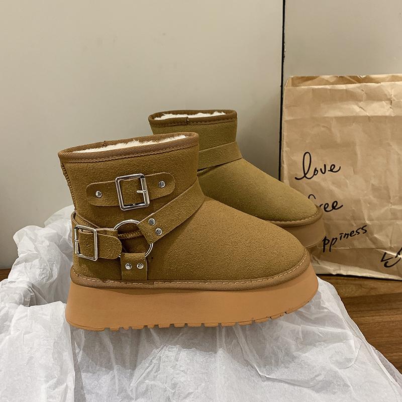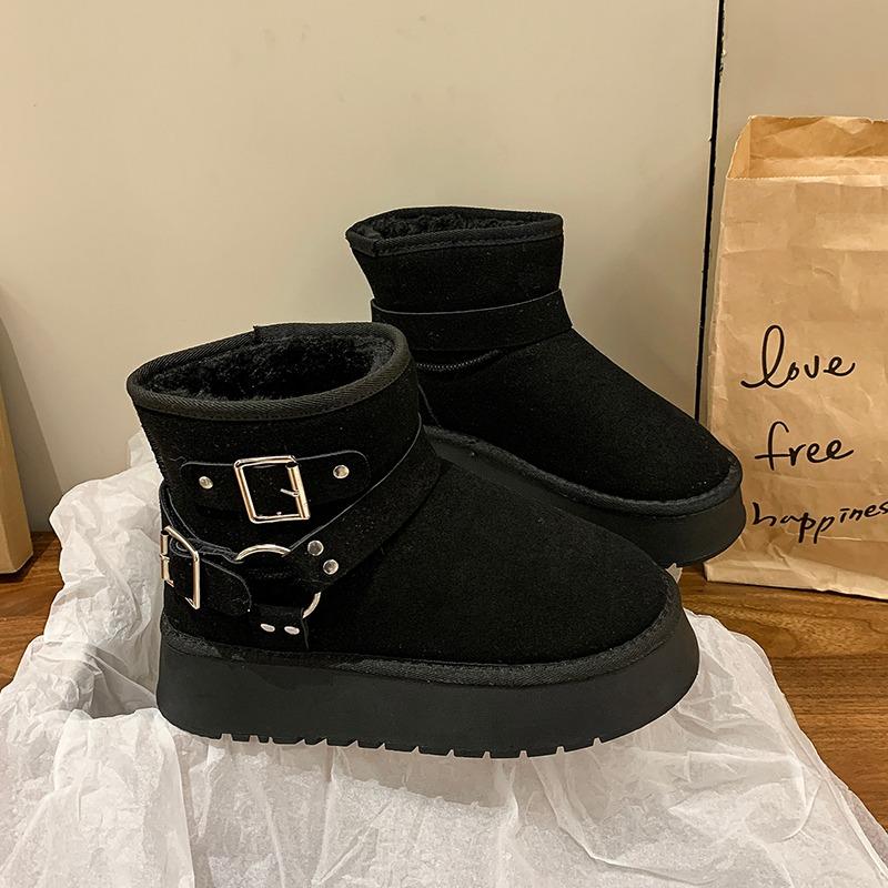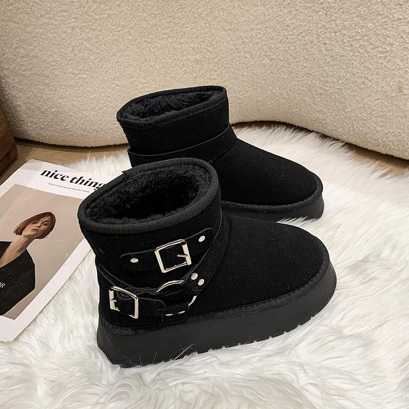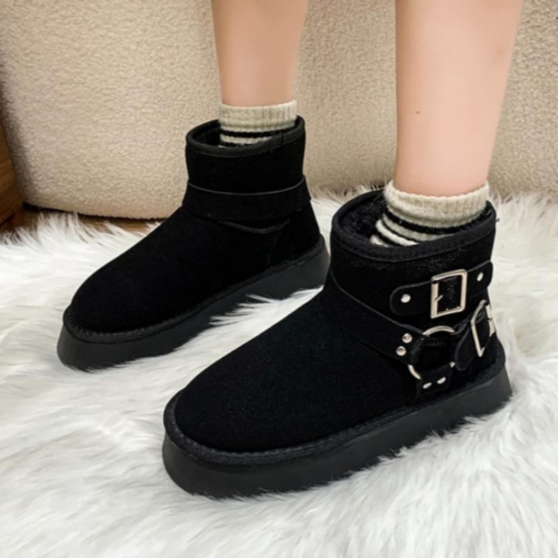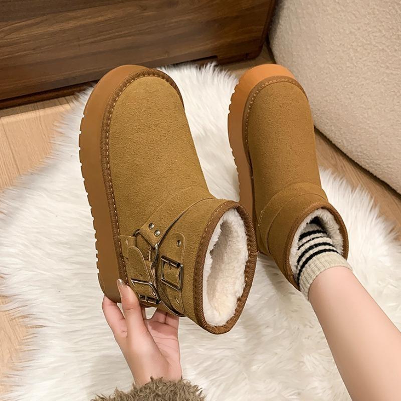 Модные туфли на плоской подошве с мехом женские ботильоны на платформе замшевые плюшевые хлопковые туфли повседневные нескользящие туфли женские зимние 2025 трендовые удобные ботинки Mujer