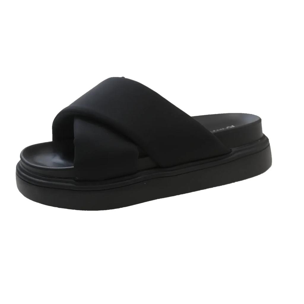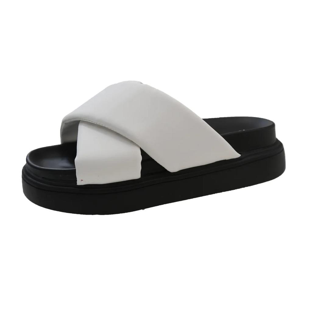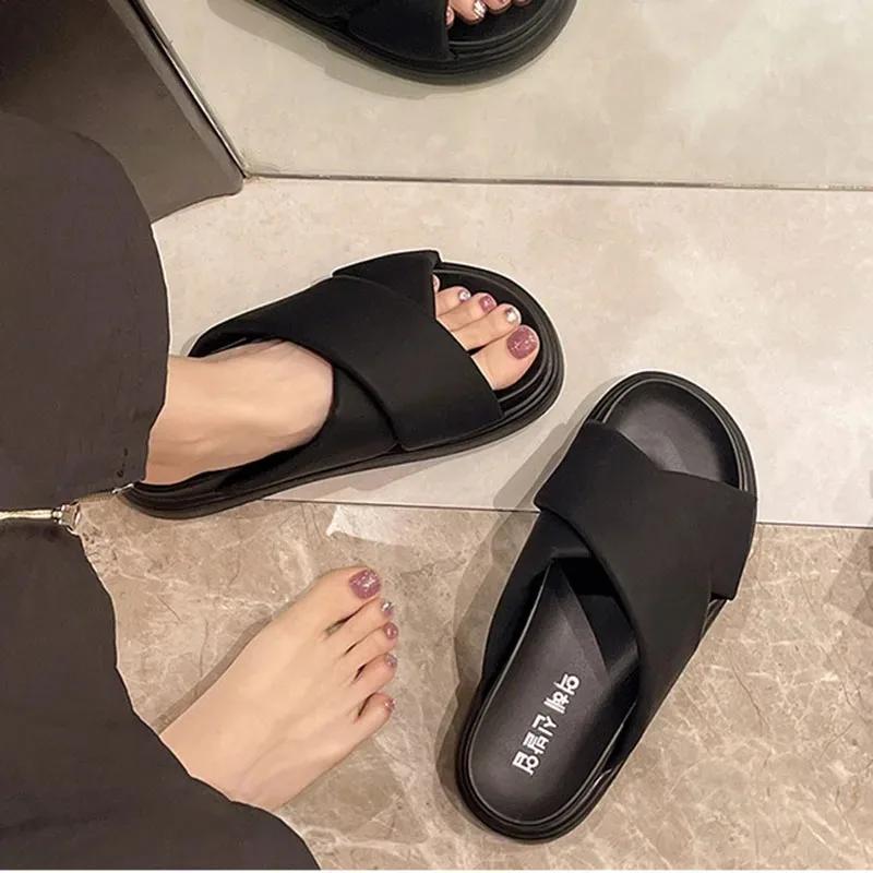 Модные женские тапочки с перекрестными ремешками на платформе 2024 года, летняя новая модная обувь на плоской подошве, увеличивающая рост, женские сандалии, шлепанцы