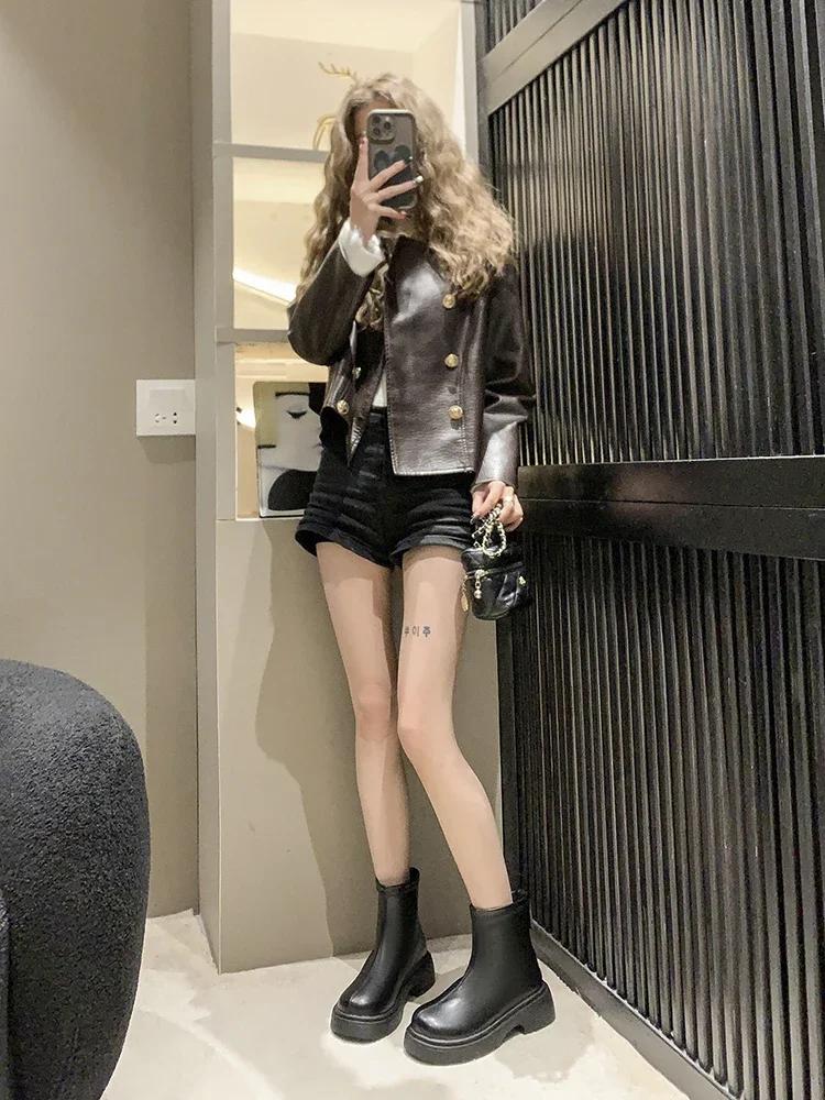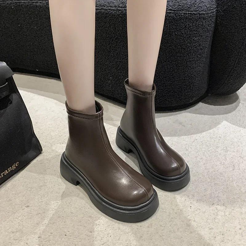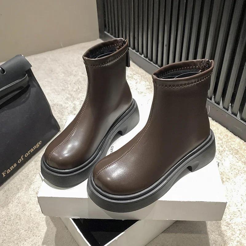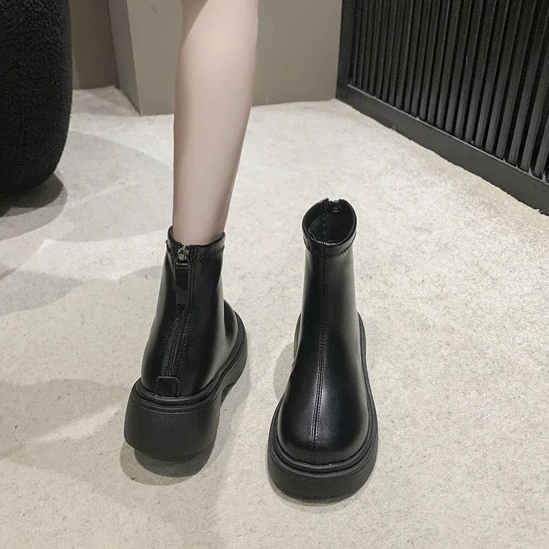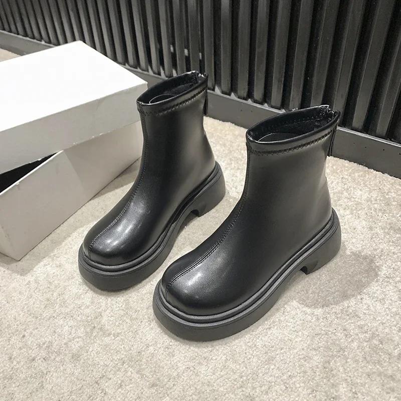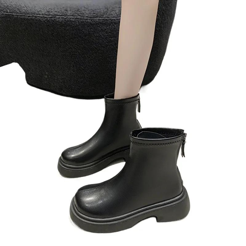 Модные новые горячие продажи женских туфель на молнии женские сапоги осенние с круглым носком однотонные короткие бочонки на платформе водонепроницаемые модные голые сапоги