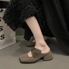 Мода 2024 года, новые ретро-тапочки Bao Head на толстом каблуке, женская одежда, весна-лето, квадратная головка, фея, слипоны, одинарные туфли