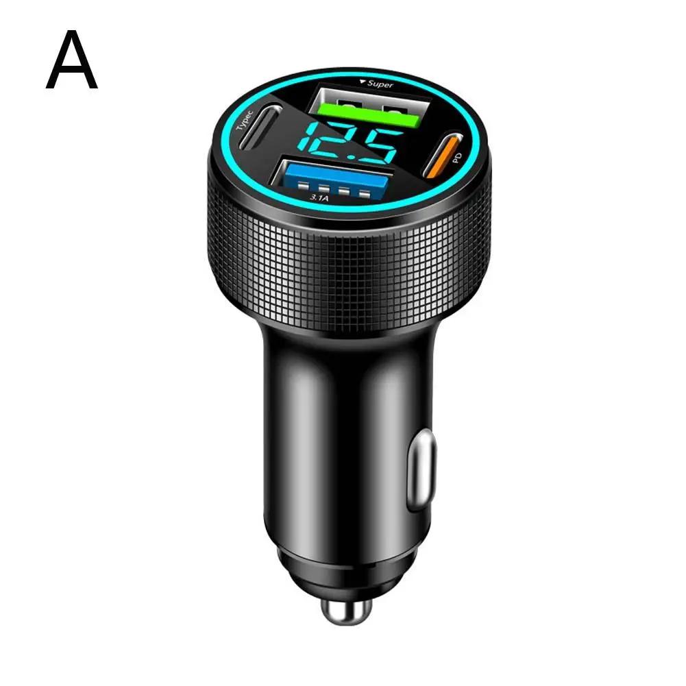 Автомобильное зарядное устройство USB с 4 портами Type C PD 200 Вт Адаптер быстрой зарядки со светодиодным монитором напряжения для iPhone OnePlus Vivo Oppo Z1R1