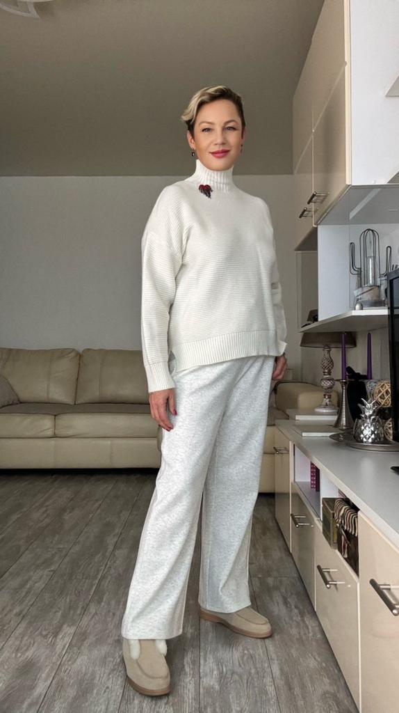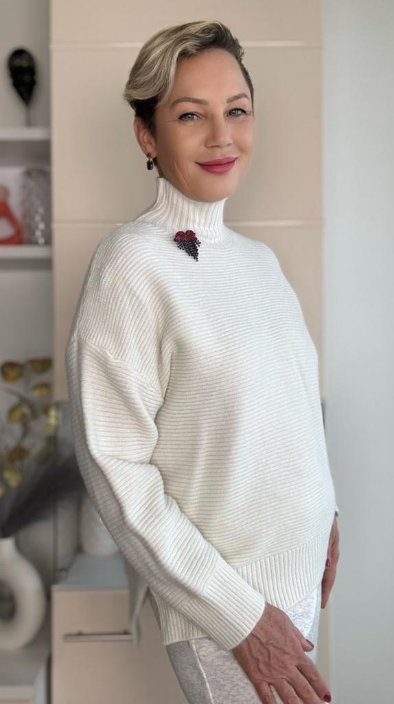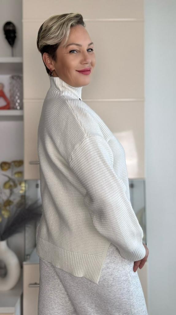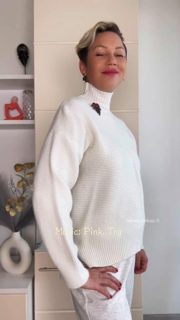 Бежевый джемпер в вязаную полоску ✔️Два цвета с выбор Цвет у продавца указан бежевый. Он, скорее, светло-бежевый Размер единый Мои параметры: 167, 98-85-100. Сел хорошо, не оверсайз, как на фото продавца, но вполне свободно ✔️Фасон: Ворот высокий, одинарный, хорошо тянется, шею не раздражает Плечи спущенные Перед короче спинки По бокам разрезы ✔️Ткань: Мягкая, не колючая Заявлен акрил Вязка выпуклая, полосками Тянется хорошо Пошив аккуратный 📐Замеры: Плечи 59 Длина рукава от горловины 69 Длина рукава 48 Ширина рукава в предплечье 20 ОГ подмышками 114 ОТ 108 ОБ 106 Длина 57-63