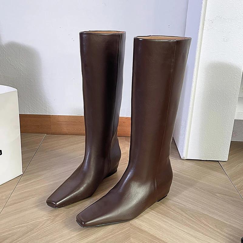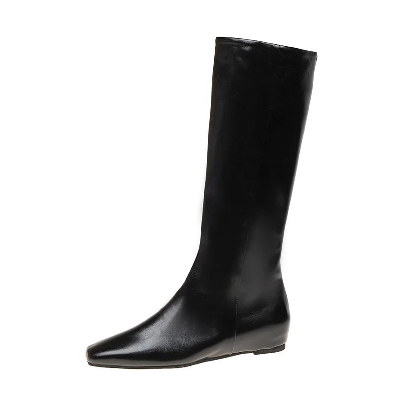 Модные женские туфли на плоской подошве с высокими сапогами до колена с квадратным носком, зима 2025, новый тренд, готические туфли челси, повседневные кожаные туфли, модное платье, Botas Mujer