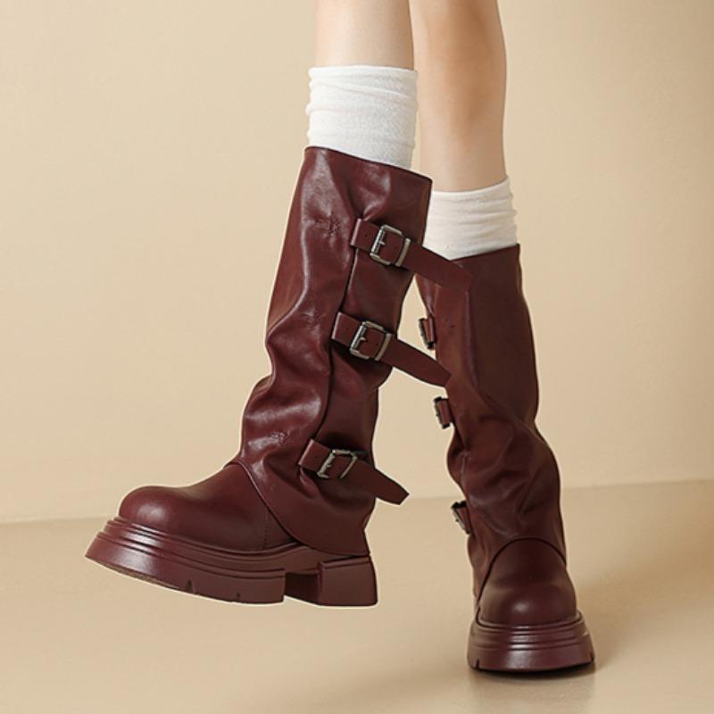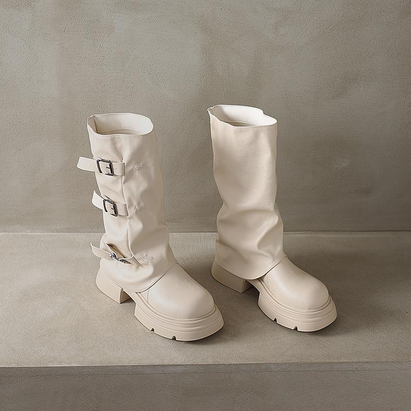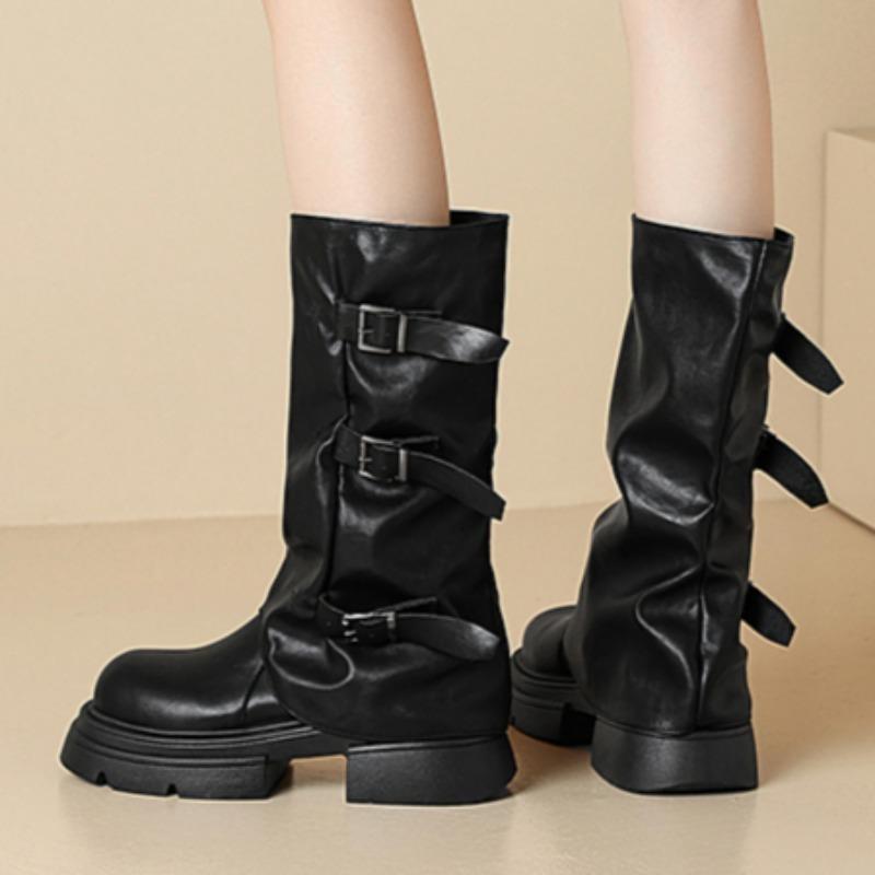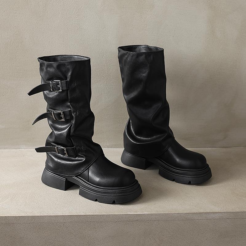 Мода Женщины Платформа Середина Икры Высокие Сапоги Высокий Каблук Кожаные Туфли Бренд Мода Снег Зима 2025 Тренд Готика Челси Толстые Ботинки Mujer