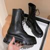 Мода Новые женские сапоги средней длины на платформе 2025 зимняя мода ботильоны на шнуровке плоские спортивные каблуки челси снежные ботинки женская обувь