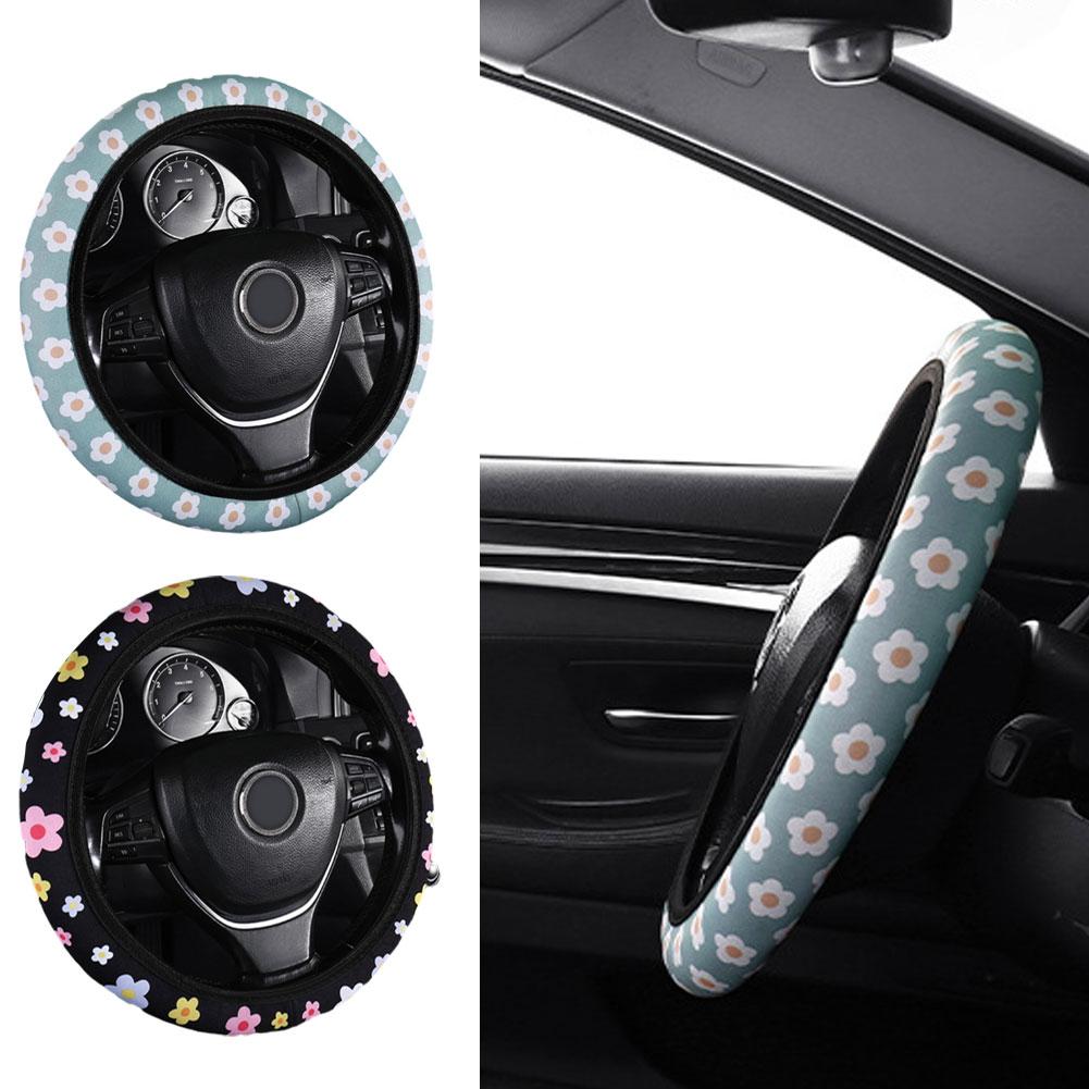 Чехол на руль автомобиля, подходит для 36~38 см, с цветочным принтом, эластичный, без внутреннего покрытия, дышащий и впитывающий, с ручкой Co B0M8
