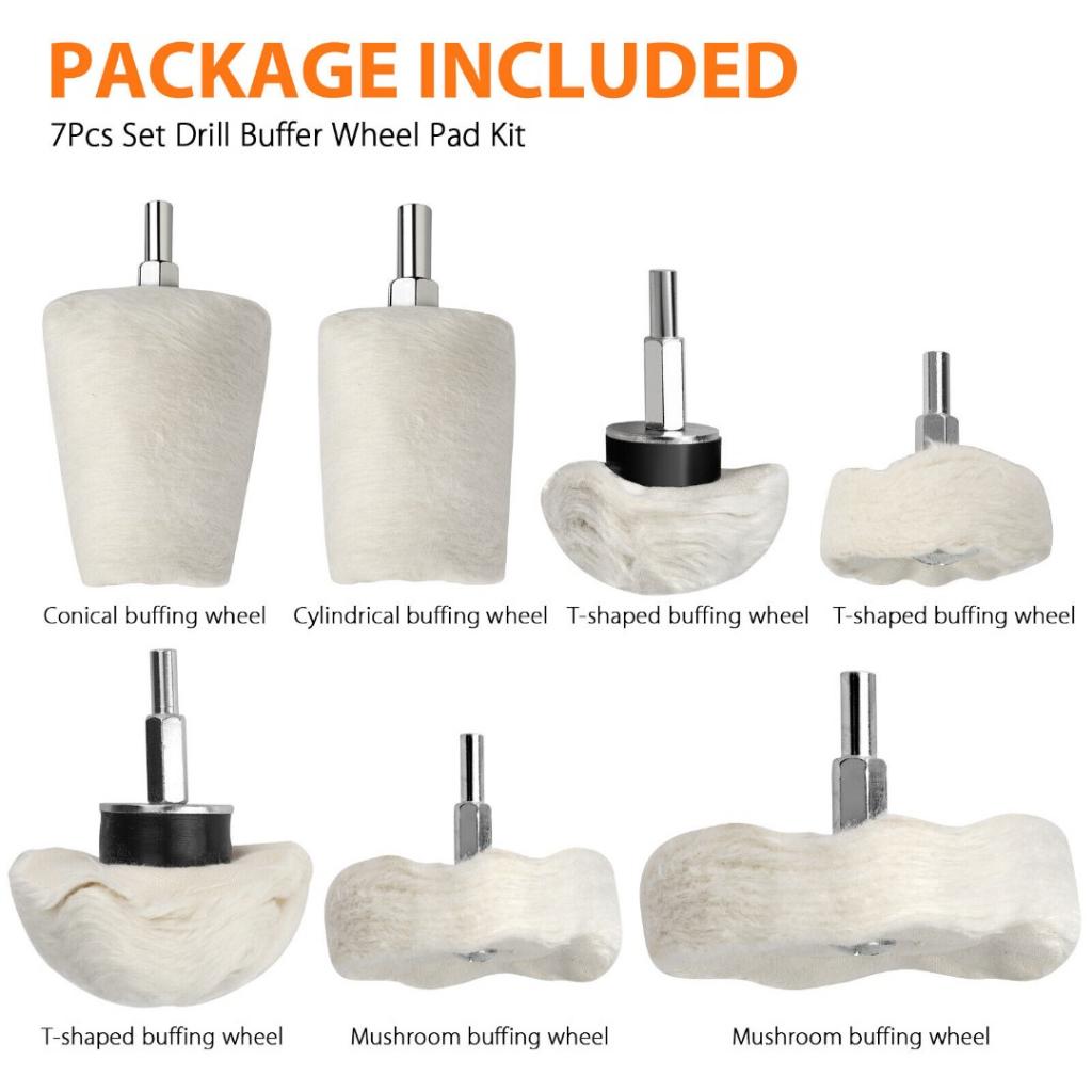 7 шт. Комплекты полировальных колес для швабры: Включает в себя 2 шт. Грибное полировальное колесо, 1 шт. Цилиндрический