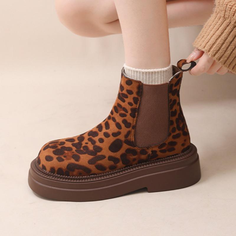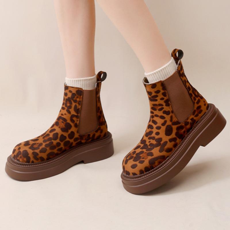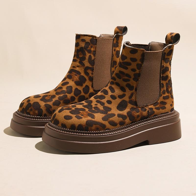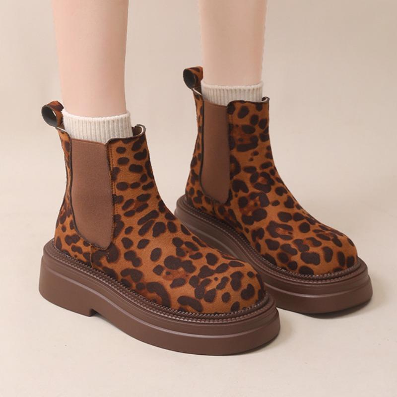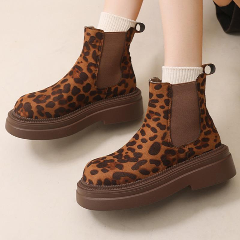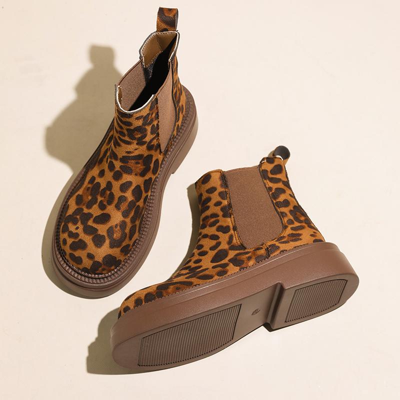Модные женские леопардовые челси ботильоны на платформе зимние ботинки на высоком каблуке замшевые туфли 2025 тренд готика повседневная обувь модные удобные ботинки женские