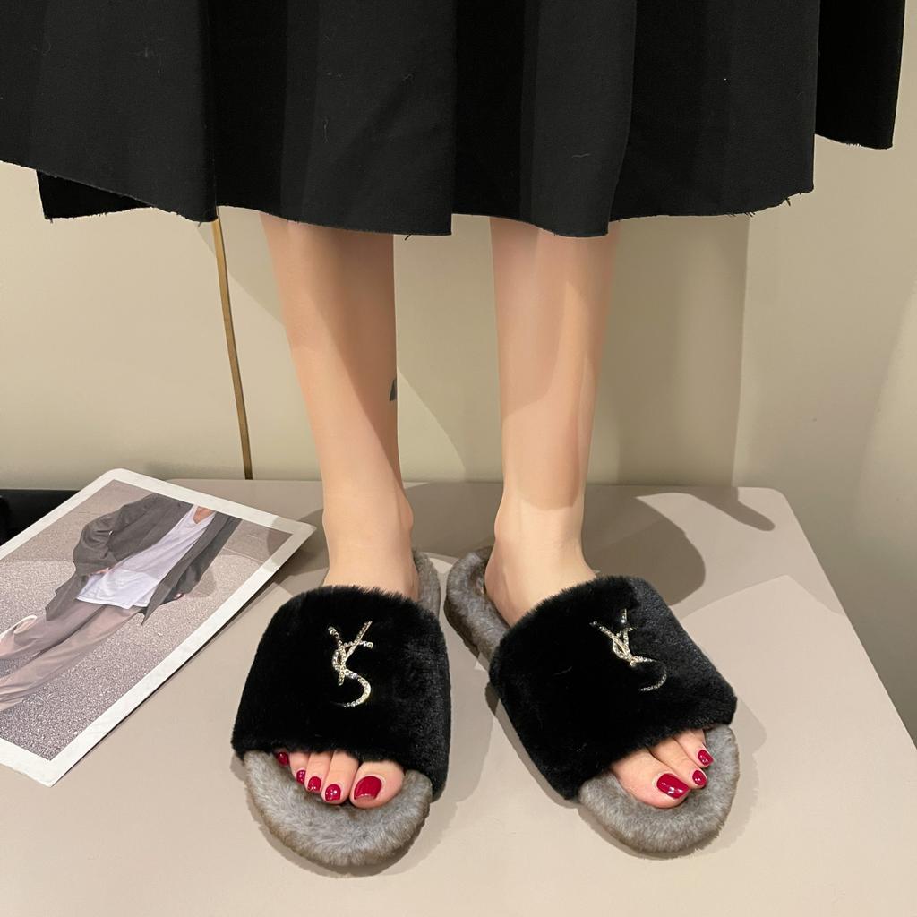 Мода 2024 года, новые осенне-зимние модные женские удобные тапочки из хлопка с металлическим декором и стразами