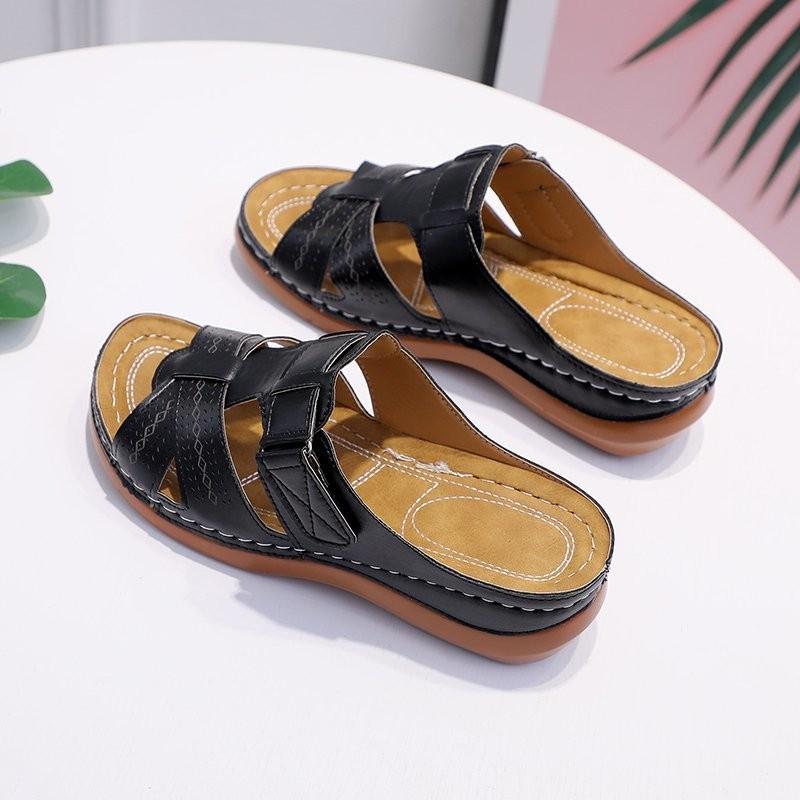 Модные летние женские тапочки с открытым носком и круглым носком для женщин, уличные туфли на танкетке, повседневные нескользящие сандалии, сандалии без застежек