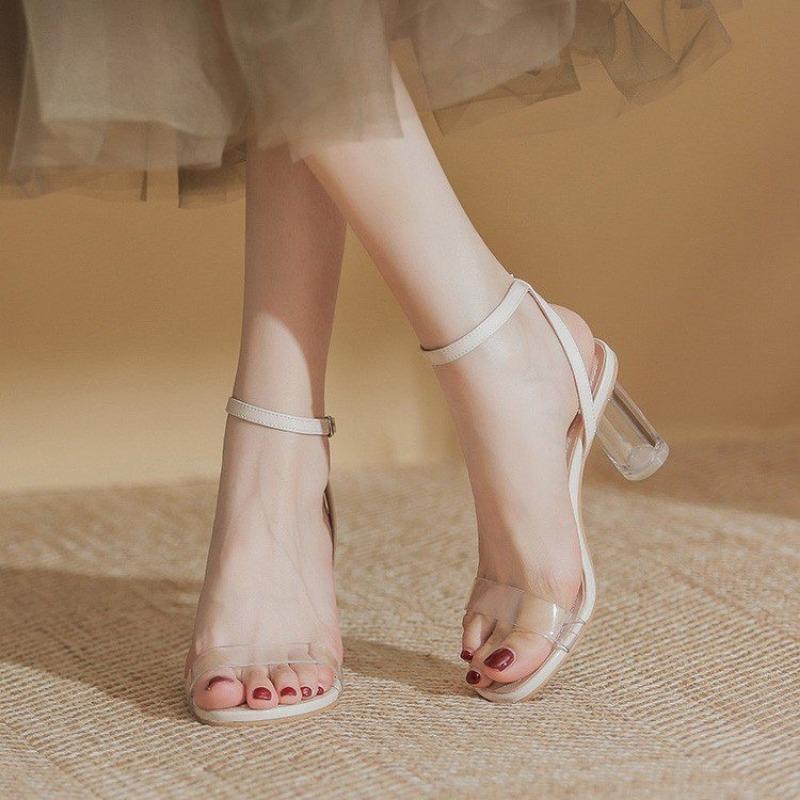Модные прозрачные босоножки на высоком каблуке для женщин летние босоножки с пряжкой на толстом каблуке женская обувь для активного отдыха женские туфли на высоком каблуке
