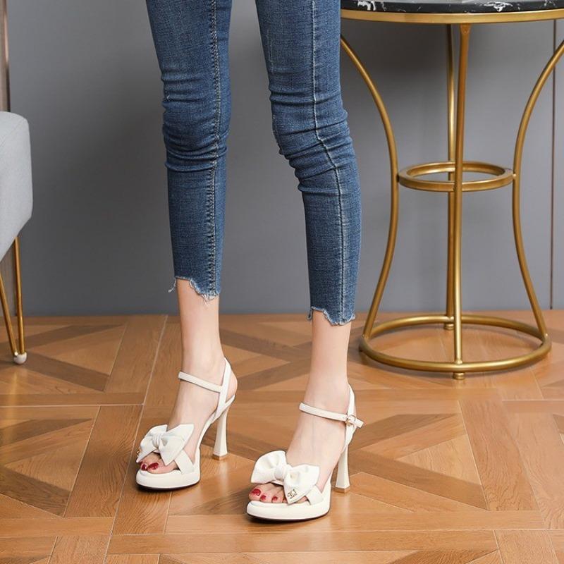 Модные женские летние туфли с бантом и рыбьим ртом на высоком каблуке женские босоножки на толстой подошве вечернее платье белое платье свадебное женское
