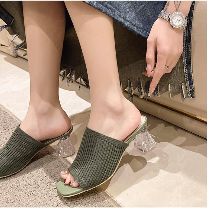 Модные мюли женские дышащие прозрачные шлепанцы на толстом каблуке сандалии высокие каблуки дышащие прозрачные шлепанцы на толстом каблуке сандалии