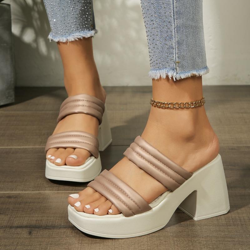 Модные женские тапочки Летние туфли с квадратным носком на толстом высоком каблуке Женская обувь Повседневные босоножки на толстой подошве Удобные тапочки Тапочки на высоком каблуке