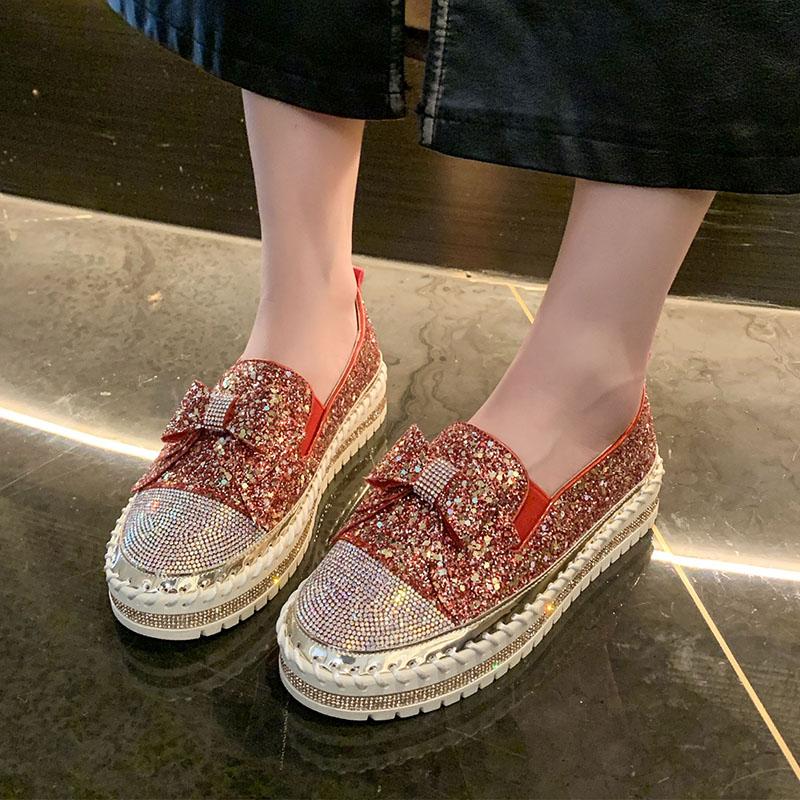 Модные осенние женские туфли на плоской подошве с круглым носком без застежки для женщин плоские туфли с неглубокой подошвой уличные туфли-лоферы с блестящим узлом-бабочкой на платформе — купить товар онлайн с бесплатной доставкой по всему миру!