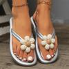 Мода 2024 Лето Повседневная мода Цветочные Украшенные Плоские Сандалии Однотонные Элегантные и Удобные Открытые Носки Противоскользящие Женские Тапочки