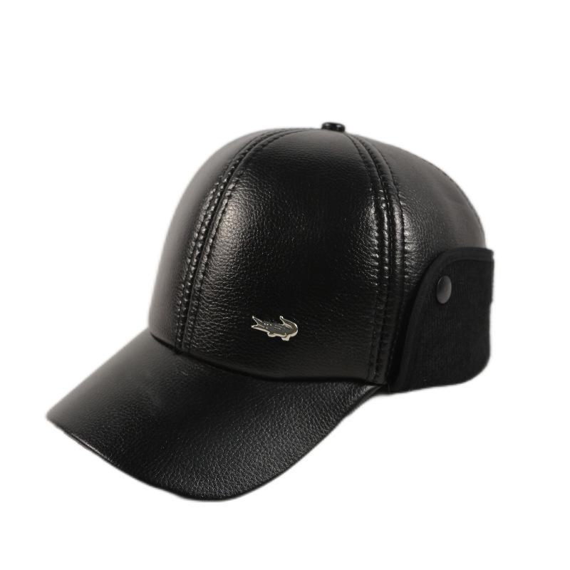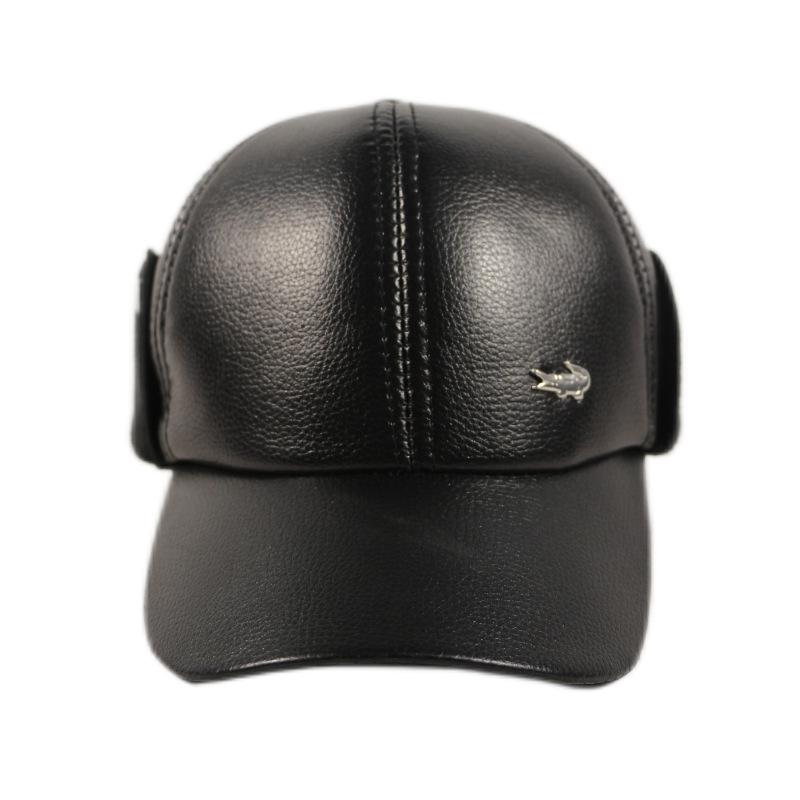 Мужские зимние кожаные шапки-утконосы с теплыми наушниками для людей среднего и пожилого возраста