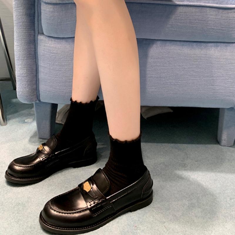 Модные женские туфли из натуральной кожи в британском стиле 2024 года, новые дизайнерские туфли на толстой подошве в стиле ретро с круглым носком и низким каблуком, женские кожаные туфли