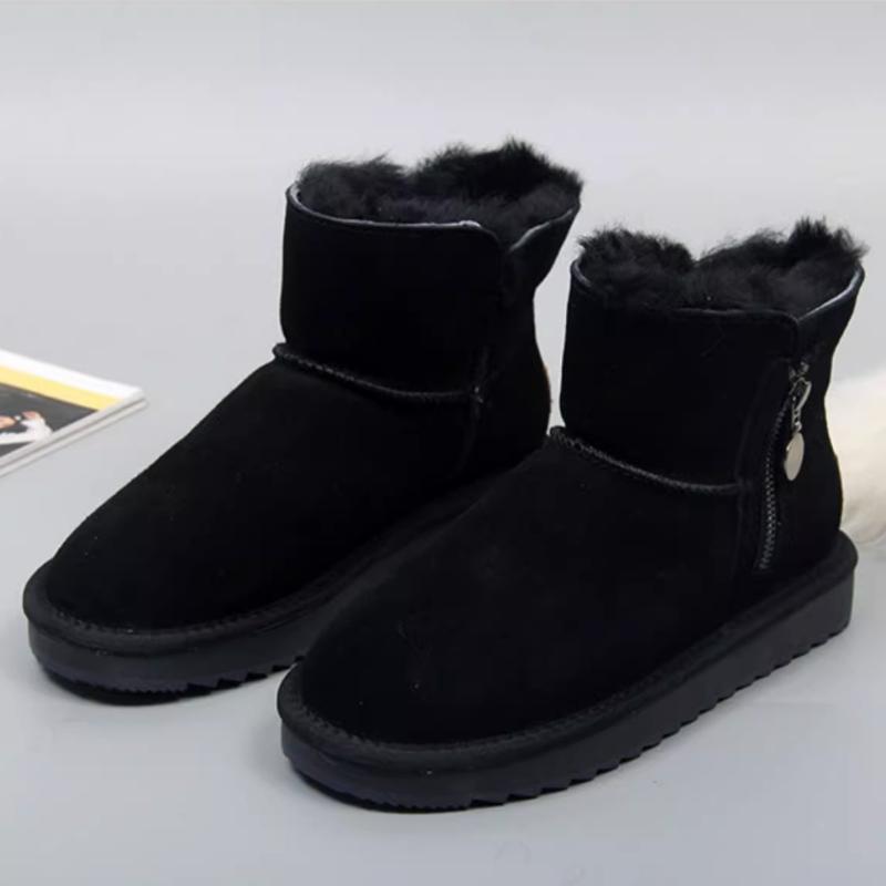 Модные цельные зимние ботинки из натуральной кожи на молнии из шерсти для женщин, зимние короткие утолщенные ботинки из шерсти и хлопка, нескользящие короткие ботинки — купить товар онлайн с бесплатной доставкой по всему миру!