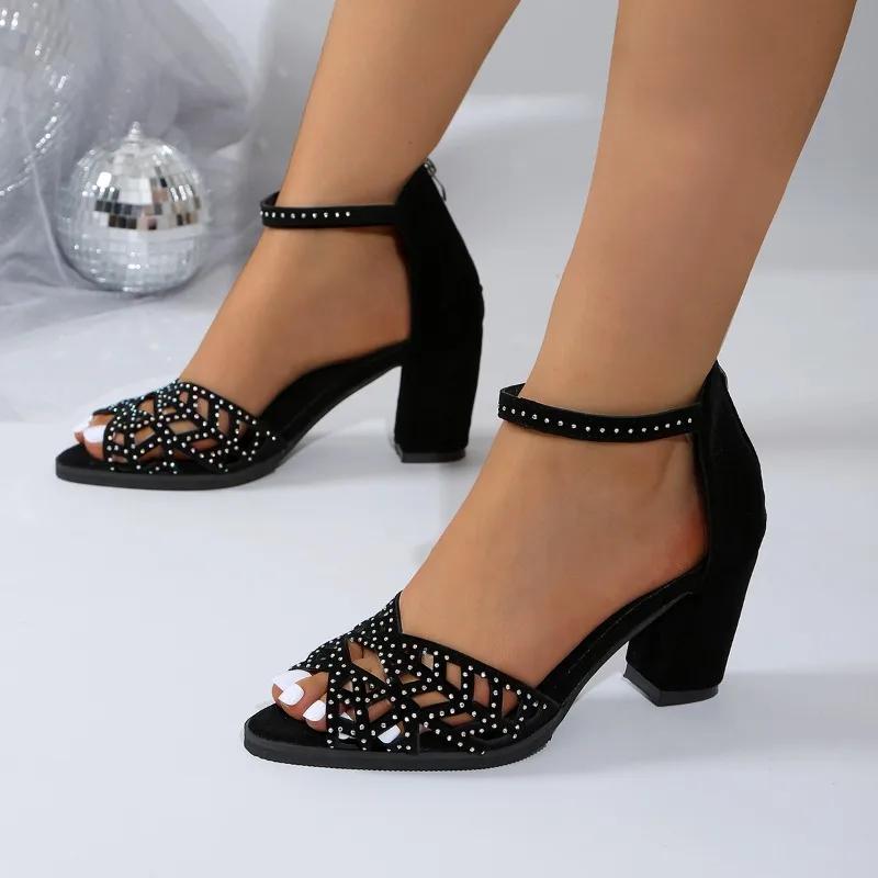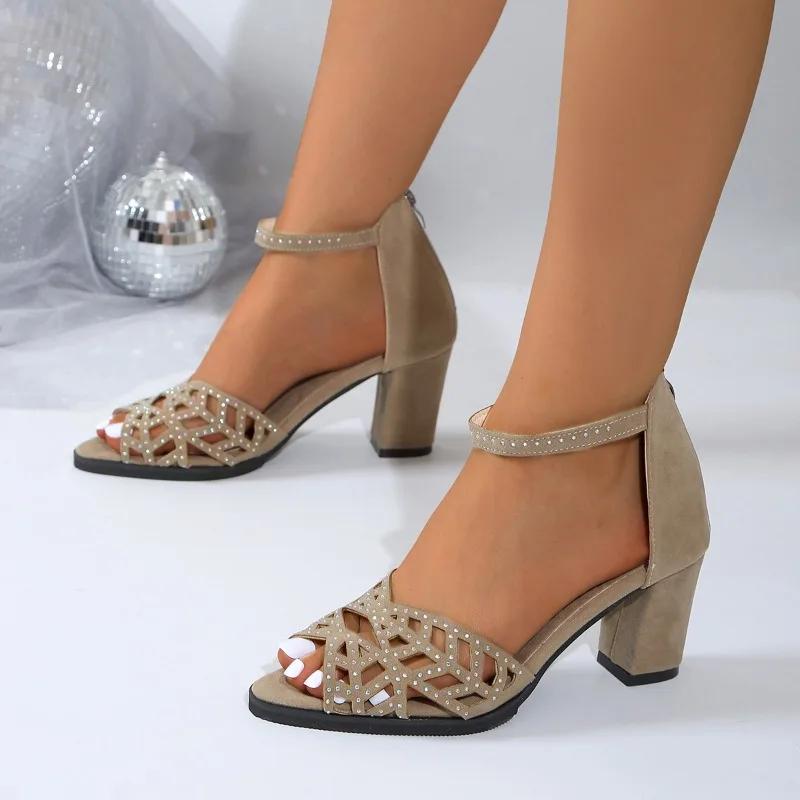 Мода 2024 Лето Высокое Качество Женская Обувь Модные Открытые Носки Однотонные Повседневные Большие Размеры Высокий Каблук Стиль Молния Женские Сандалии