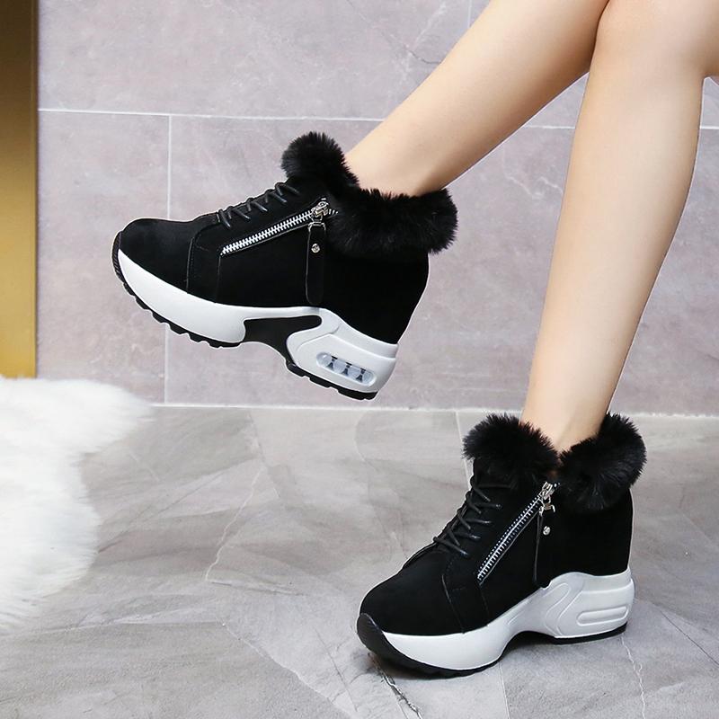 Мода 2024 года. Женские туфли на высоком каблуке. Мягкие теплые зимние кроссовки. Повседневная женская повседневная обувь с боковой молнией.