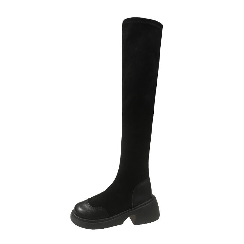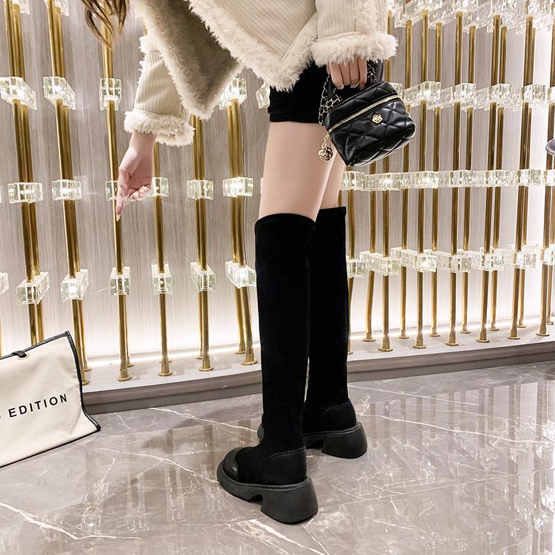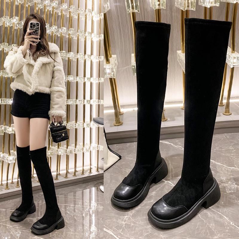 Мода осень зима сексуальные женские сапоги выше колена эластичные силовые женские сапоги на платформе модная женская обувь женские длинные сапоги