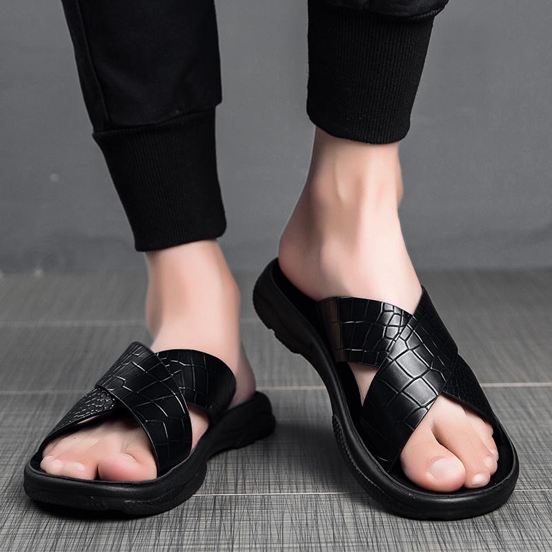 FashionSandals Мужские кожаные классические летние мужские тапочки для отдыха на открытом воздухе Мягкие черные тапочки Легкие шлепанцы для мужчин Нескользящие тапочки