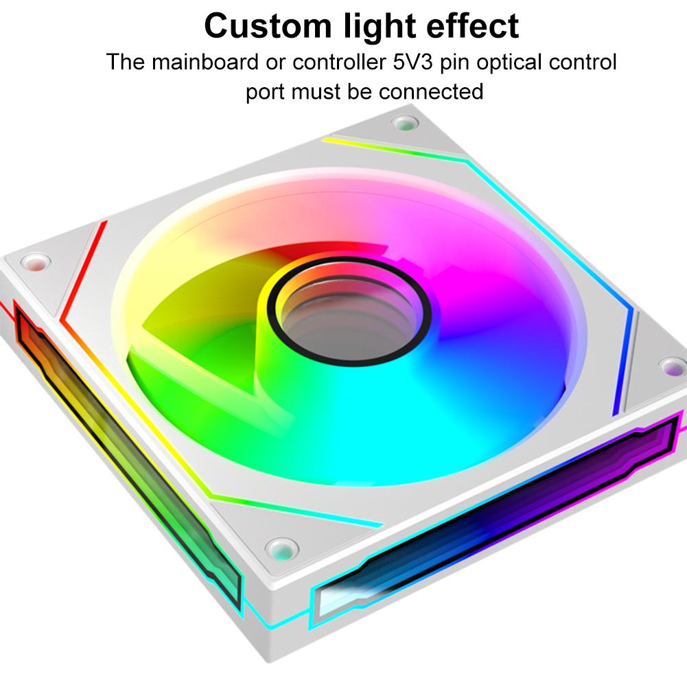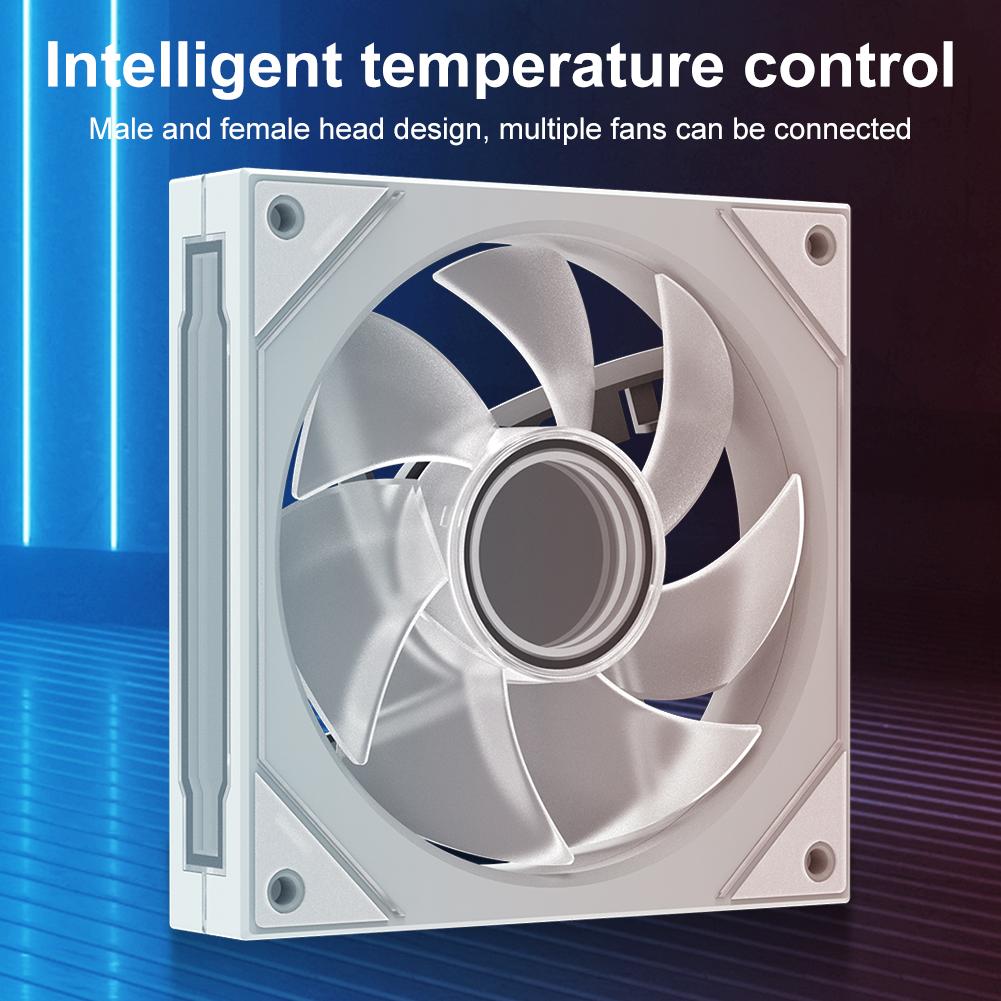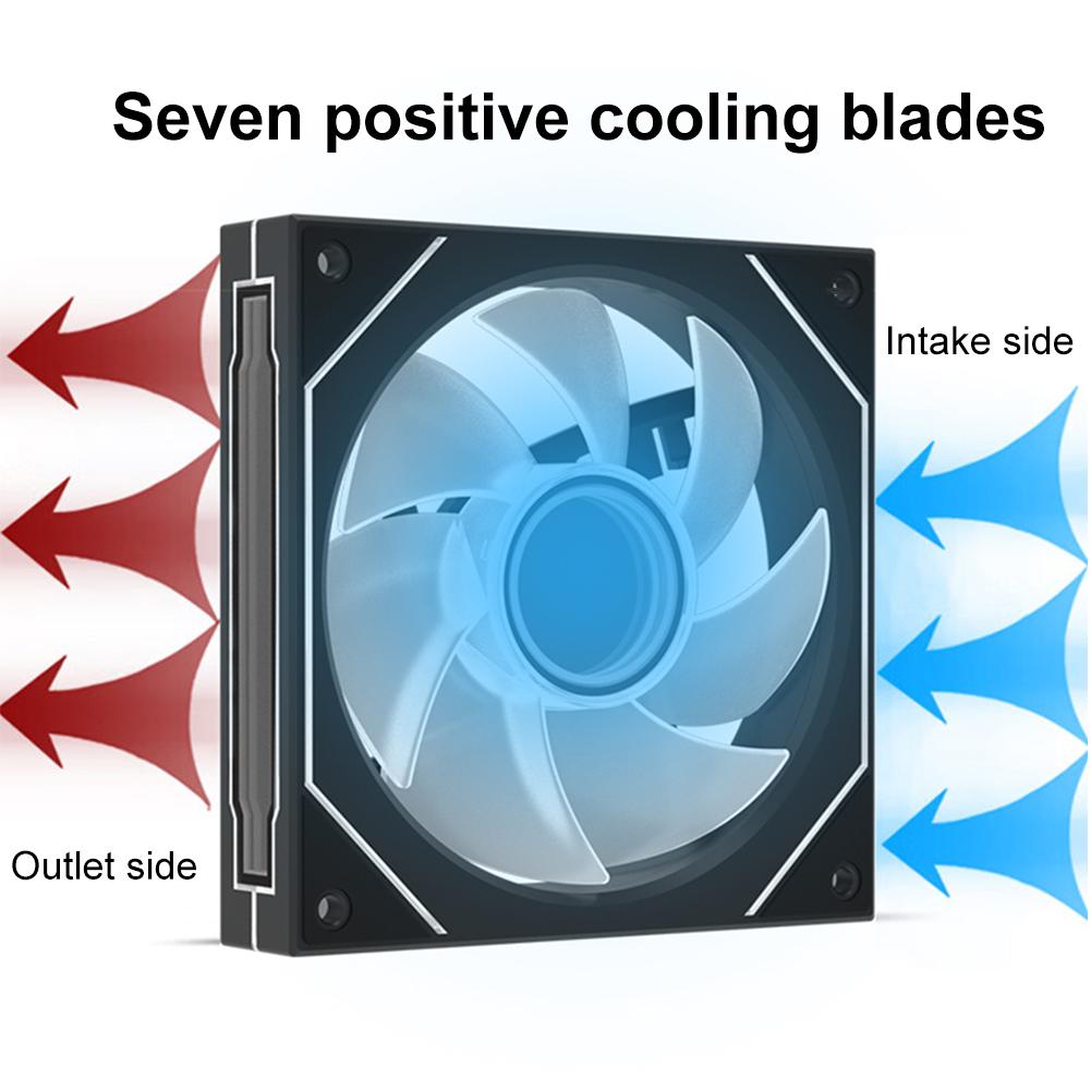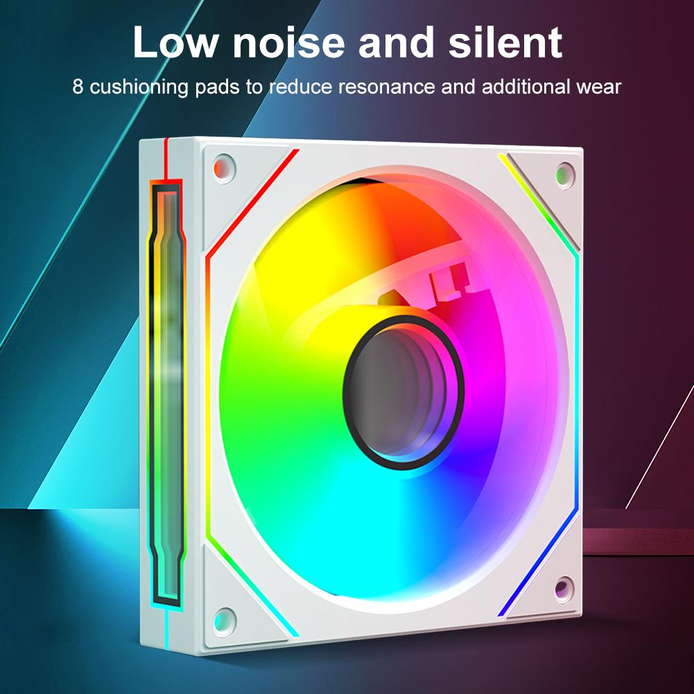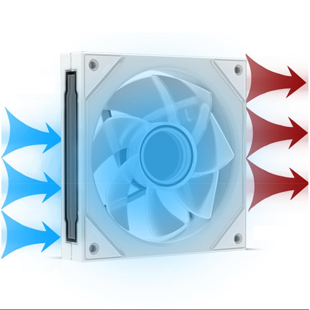 5.Эффективное рассеивание тепла: Этот тихий вентилятор охлаждения, разработанный для корпусов настольных ПК, улучшает охлаждение благодаря усовершенствованной синхронизации воздушного потока и подсветки.. Идеально подходит для геймеров и любителей технологий, которым нужна как производительность, так и стиль..