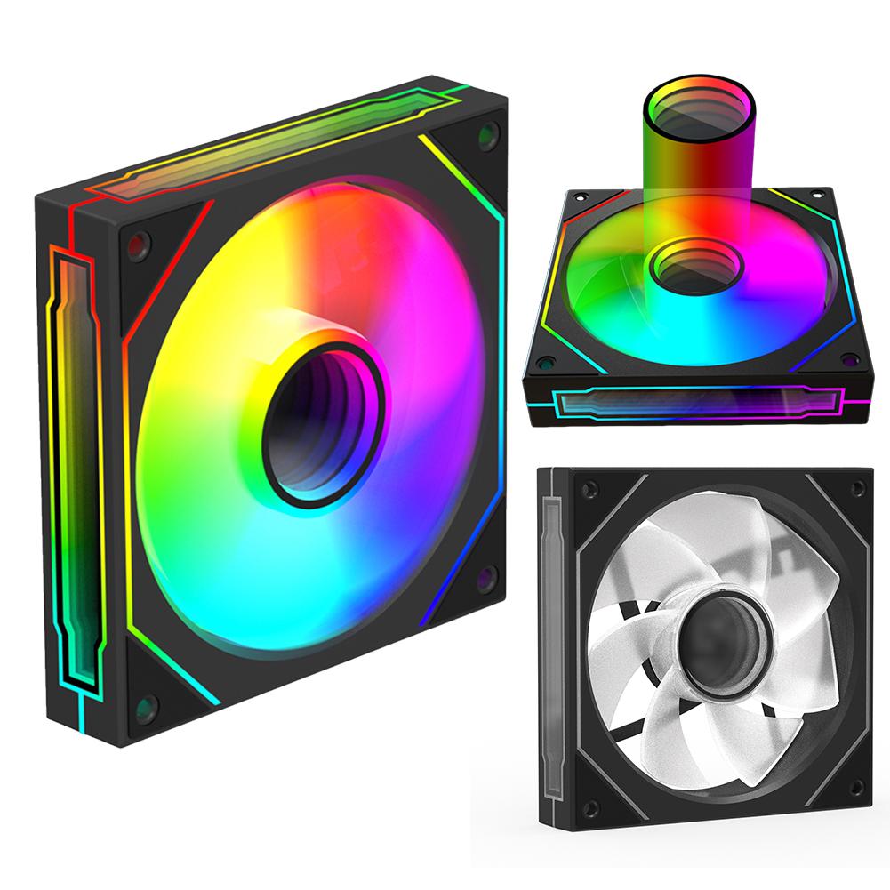 1. Потрясающий визуальный дизайн: Этот вентилятор для корпуса с эффектом бесконечного зеркала с трех сторон, восемью лопастями и 26 светодиодами ARGB создает завораживающее зрелище. Он легко синхронизируется с материнской платой для настраиваемых световых эффектов..